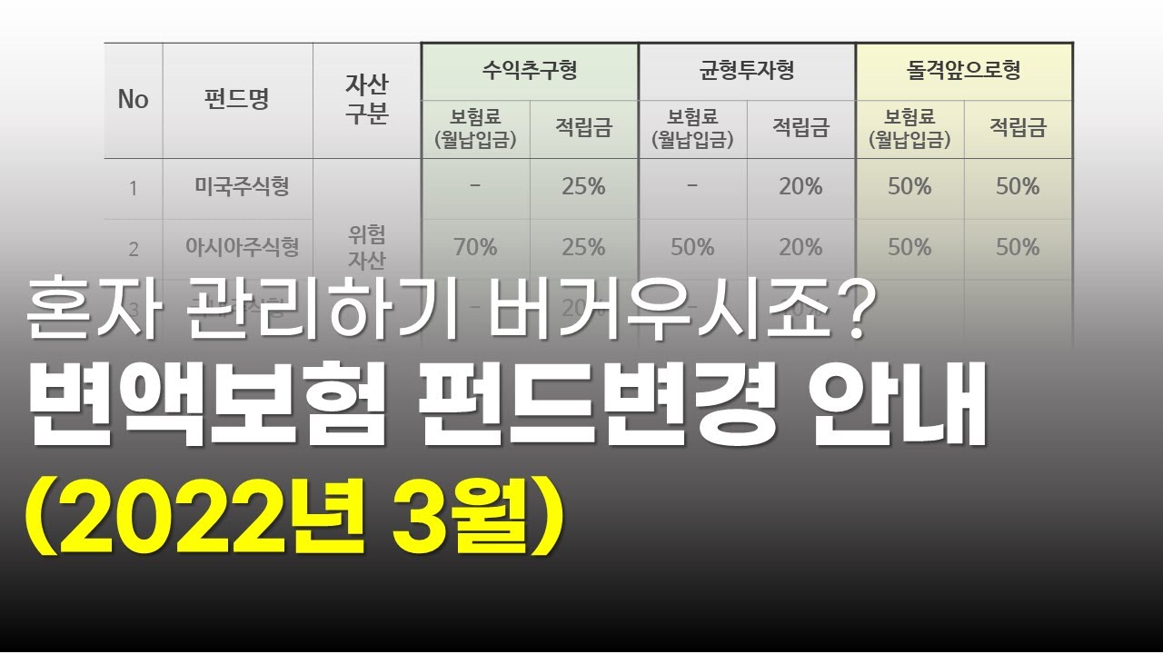 변액보험 특성상 연금 등 장기적인 재무목표를 고려하여 운용되고 있으며, 거액의 자금을 조달하고 있어 잦은 자금변경은 적절하지 않다고 생각합니다. 또한 어렵습니다. )
