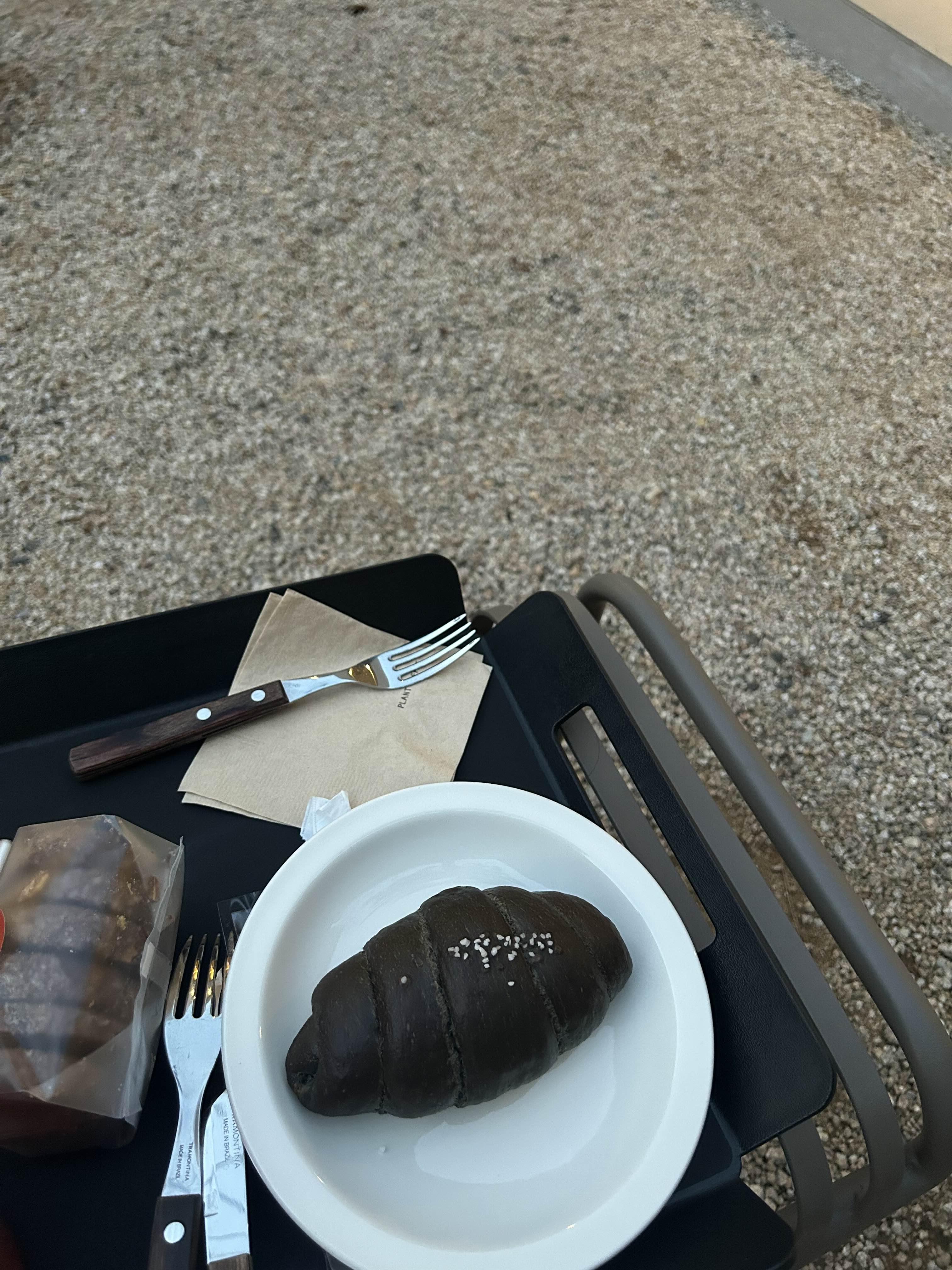 안에 크림치즈가 들어있는데도 짭짤한 먹물빵은 버터향이 아주 진하고 밑부분이 바삭바삭해서 너무 맛있었어요!