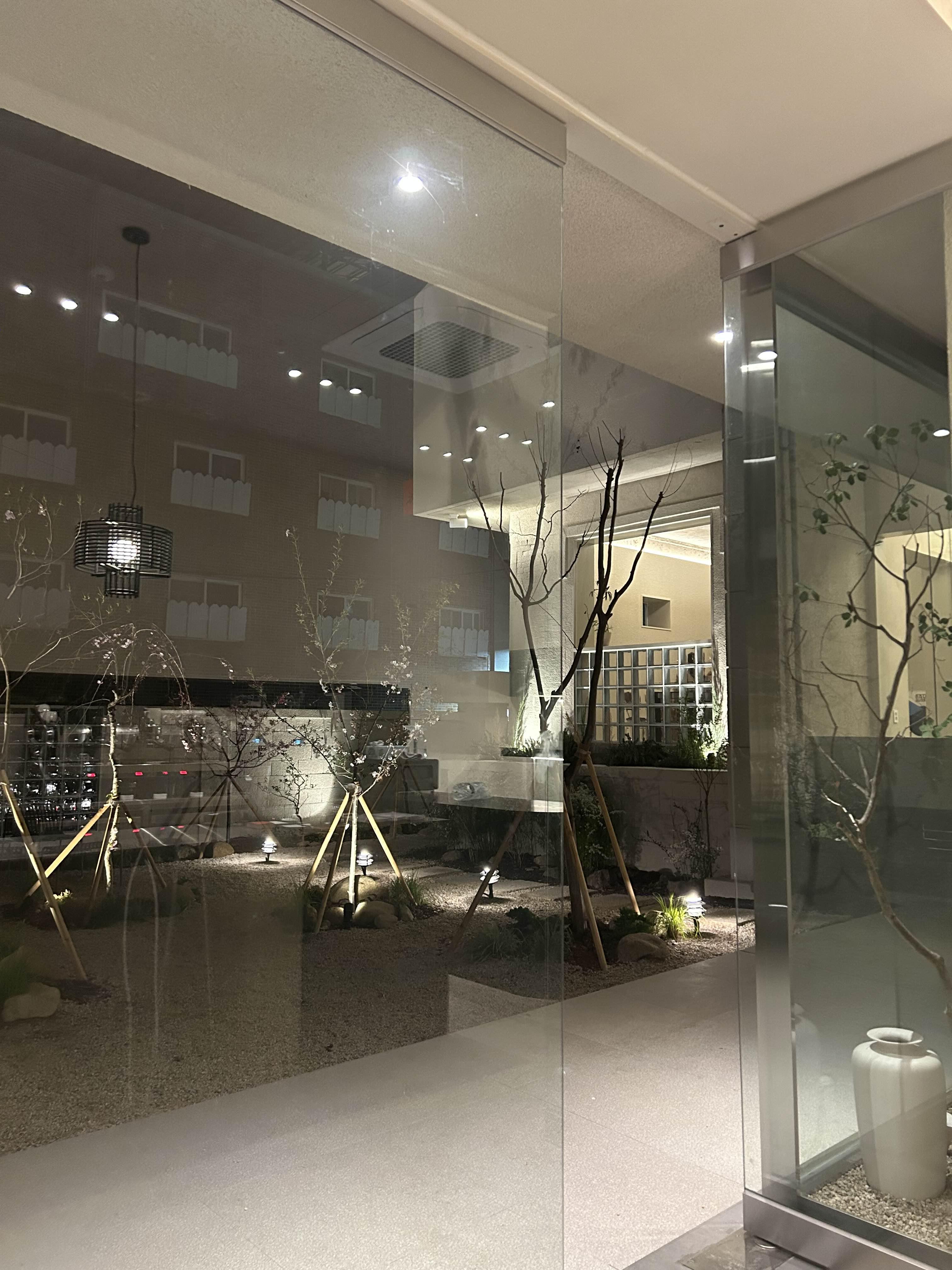 날이 화창해서 가운데 정원에 자리를 잡았습니다.