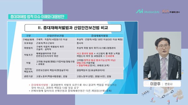 출처 : JTBC뉴스(좌), 서울경제(우) 한편, 오늘 또다시 중대재해처벌법이 적용되는 사건이 발생했다. 안성 물류센터 사고로 공사장에서 5명이 넘어지고 2명이 숨졌다. . 사실 어느 쪽이 가장 잘못인지 판단하기가 쉽지 않다. 건설현장에서 도급업자(contractor)는 여러 도급업자를 이용해 공사를 진행하는데, 사망한 근로자는 ‘도급업체’ 직원일 가능성이 높다. 다만, 이 경우 위에서 언급한 SPC와 달리 상위에 있는 ‘건설사 대표’도 벌칙을 받고 벌칙을 받을 가능성이 있다. 사망한 근로자의 공급자인 회사가 건설현장에서 혼자 일을 처리하는 것이 아니라 결국 ‘하청업체’와 ‘건설노동자’의 지시와 감독 아래 일하게 되기 때문이다. 여기서 경영진은 건설회사의 대표가 되며 중대재해처벌법이나 산업안전보건법의 구속을 받는다.